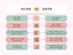 레스토랑창업 vs 공유주방창업, 고민 되시죠? 요식업창업을 꿈꾸신다면, 어디에서 어떤 형태로 음식을 제공할 지 아직 정하지 않으셨다면 이 글을 읽어보시면 될 것 같습니다. 일반 식당 및 공유주방 등 다양한 형태로 시작할 수 있습니다. 하지만, 어떤 유형의 식당 컨셉이 더 나은 사업 계획이 될 수 있을까요? 초기 자본, 운영 비용, 수익, 장단점까지 꼼꼼하게 비교 분석해 드립니다.